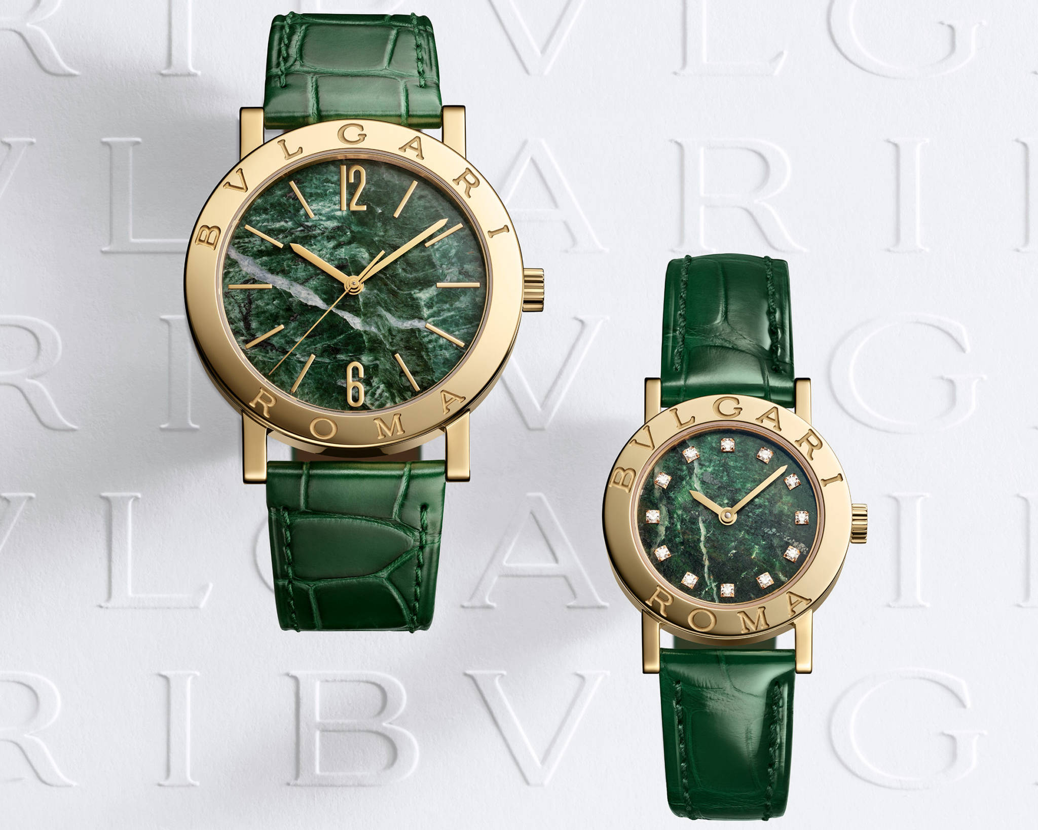 Pour honorer cet héritage, la Maison a révélé une série de pièces d’exception. Quatre montres comme quatre chapitres d’un récit romain, serties d’or jaune ou rose, aux cadrans taillés dans le marbre vert ou bleu. Le calibre BVL 191, battement secret de ces œuvres mécaniques, dialogue avec la lumière des diamants. Chaque modèle évoque la grandeur antique transposée dans la rigueur contemporaine de l’horlogerie genevoise.