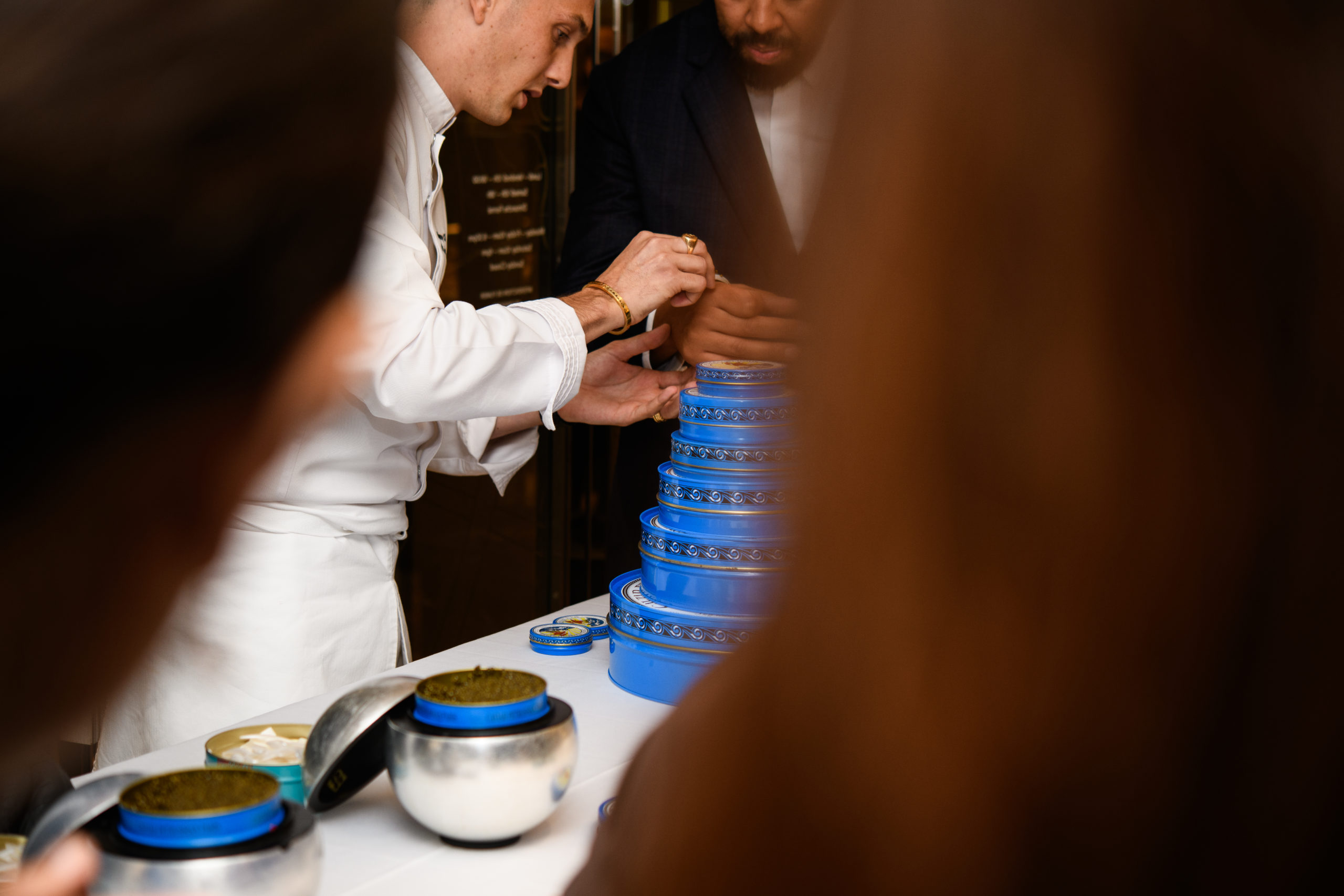Pour prolonger cet hommage, la Maison a imaginé une soirée à son image, lumineuse et raffinée. Dans la boutique transformée en écrin doré, une quarantaine d’invités triés sur le volet ont été accueillis dans une atmosphère feutrée, entre boiseries, éclats d’or et parfums de cuir. Venue spécialement de Rome, une représentante de l’équipe Heritage a fait revivre les gestes et les audaces de la Maison, mêlant souvenirs, confidences et anecdotes autour de ces cinquante années de création. La célébration s’est ensuite prolongée dans le cadre prestigieux du Bayview, le restaurant étoilé du chef Danny Khezzar, Friend of the House de Bvlgari pour la Suisse. Les convives ont profité d’un dîner imaginé spécialement pour l’occasion, un véritable voyage gastronomique rendant hommage à l’esprit et à la beauté intemporelle de la Maison.