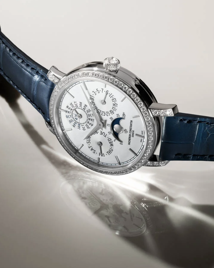 Chaque déclinaison affirme sa propre nuance. L’or rose associé à un bleu profond évoque une élégance intemporelle aux accents patrimoniaux, tandis que la version en or blanc privilégie des tonalités plus douces, pour une modernité sans ostentation. Quant à l’édition sertie de diamants, elle démontre que le glamour peut rester discret lorsqu’il est traité avec finesse et mesure. À travers ces trois expressions, le message reste le même : le style durable ne se définit pas par la taille, mais par le sens. Dans une époque avide de spectaculaire, Vacheron Constantin rappelle que les formes les plus abouties du luxe sont souvent les plus silencieuses, pensées non pour attirer les regards, mais pour être comprises par ceux qui savent déjà.