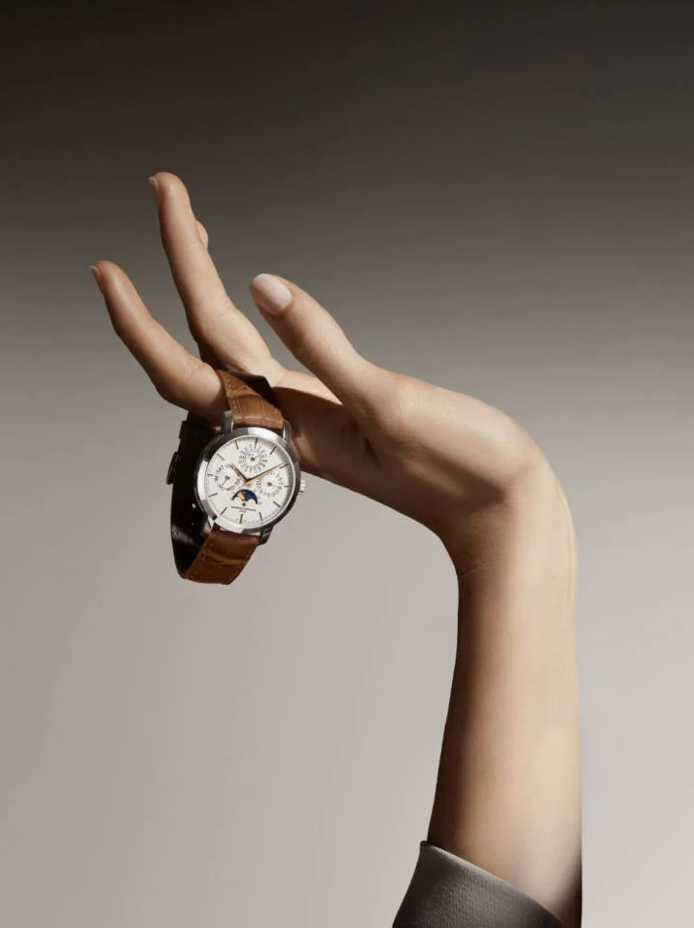 Déclinées en or rose, en or blanc et dans une version en or blanc sertie de diamants, ces montres reprennent les codes esthétiques qui ont fait de la ligne Traditionnelle une référence pour les connaisseurs. Lunette fine, cornes nettes et cadran opalin parfaitement équilibré composent une esthétique de retenue, conçue pour susciter l’attention plutôt que la provoquer. Si la complexité mécanique qu’elles abritent impressionne un quantième perpétuel capable d’indiquer le temps jusqu’en 2100 sans correction c’est avant tout la philosophie de ces pièces qui retient l’attention. En réduisant le diamètre à 36,5 mm, Vacheron Constantin ne se contente pas de revisiter une proportion classique : la Maison redéfinit le luxe contemporain. Une taille plus contenue apparaît plus intentionnelle, plus réfléchie, en phase avec un monde qui redécouvre la sophistication de la subtilité.