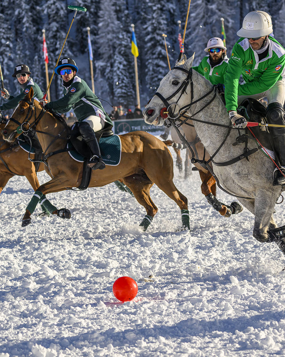 Mais à St. Moritz, le Snow Polo World Cup ne se résume jamais à la compétition. Il s’impose aussi comme un rendez-vous social et culturel, où le sport dialogue avec l’art de vivre alpin. Autour du terrain, les espaces VIP, le Perrier-Jouët Chukker Club et les tribunes accueillent une clientèle internationale venue autant pour l’expérience que pour le jeu. Champagne à la main, regard tourné vers les chevaux lancés à pleine vitesse sur la glace, le public assiste à une mise en scène où le luxe reste discret, mais omniprésent.
