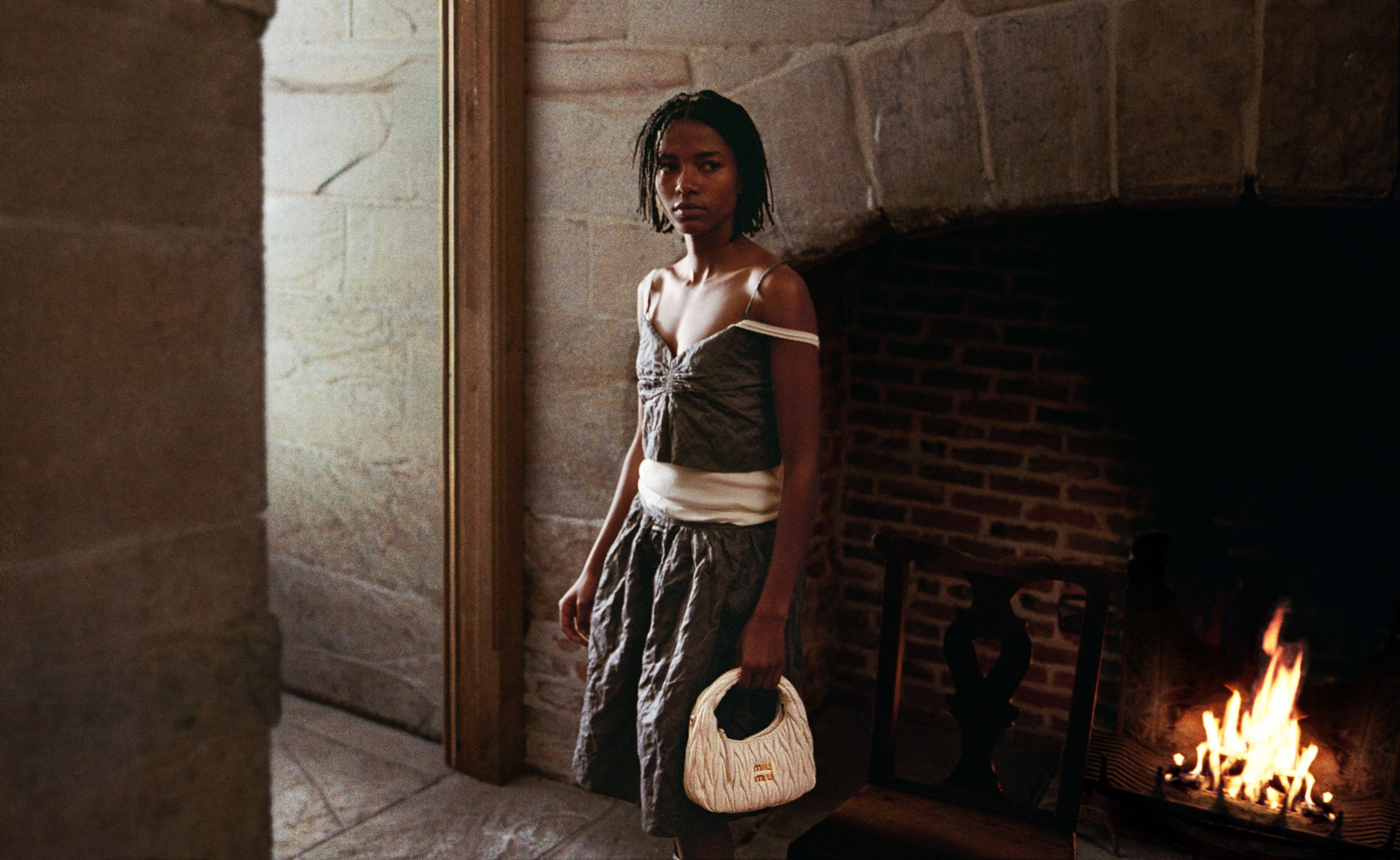 Pour sa campagne d’hiver 2025, Miu Miu s’éloigne du bruit des fêtes pour proposer une vision intimiste et cinématographique de la saison. Sous l’objectif d’Angela Hill, Gigi Hadid, Dede Mansro, Viola et Ju Xiaowen se retrouvent dans un manoir élisabéthain de la campagne britannique, un lieu chargé de mémoire où l’ancien dialogue avec le présent. La maison transforme ce décor en véritable refuge, un espace où le temps semble suspendu et où chaque pierre raconte une histoire.Les murs de briques anciennes marquées par le temps et la splendeur légèrement abîmée de l’architecture créent un contraste poignant avec l’énergie lumineuse du casting.