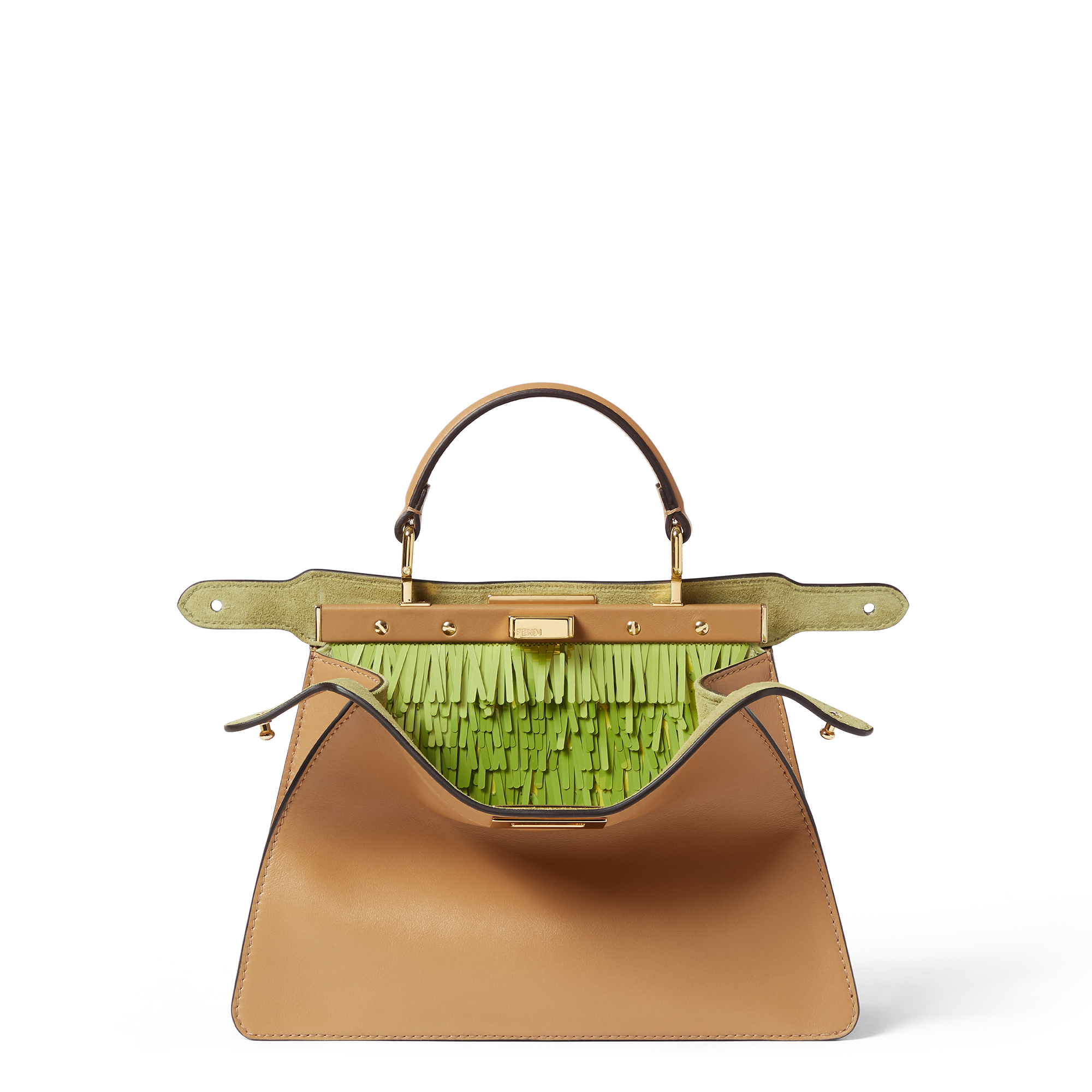 Il y a les sacs que l’on montre, et ceux que l’on découvre. Depuis 2008, le Peekaboo bag incarne cette élégance presque secrète qui fait la signature de la Maison Fendi. Inspiré du jeu d’enfant « peek-a-boo, I see you », il cultive depuis toujours l’art du contraste, entre lignes épurées et richesse insoupçonnée de ses finitions intérieures.