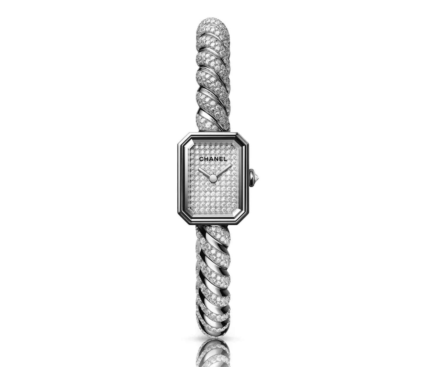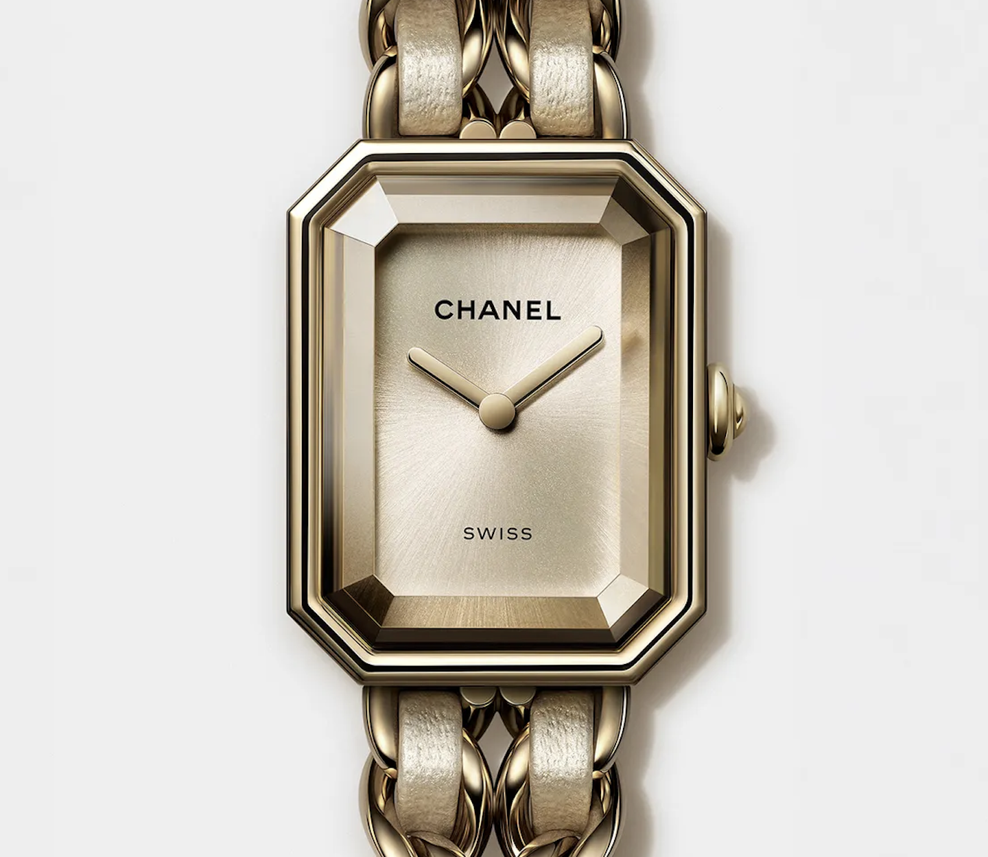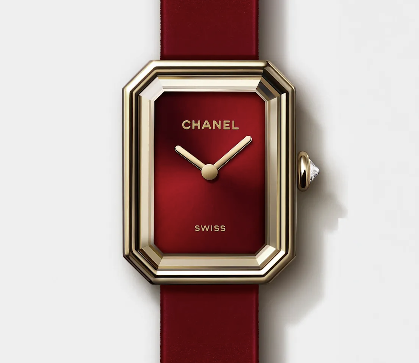 La montre Première de Chanel incarne parfaitement ce mouvement. Créée en 1987, elle se distingue par son boîtier octogonal inspiré du flacon du parfum N°5 et par son cadran épuré, sans chiffres, qui met l’accent sur l’essentiel. Les nouvelles versions dévoilées cette année prolongent cette identité forte, notamment avec des déclinaisons comme la version ruban rouge, dotée d’un cadran laqué soleillé et d’un mouvement quartz de haute précision.